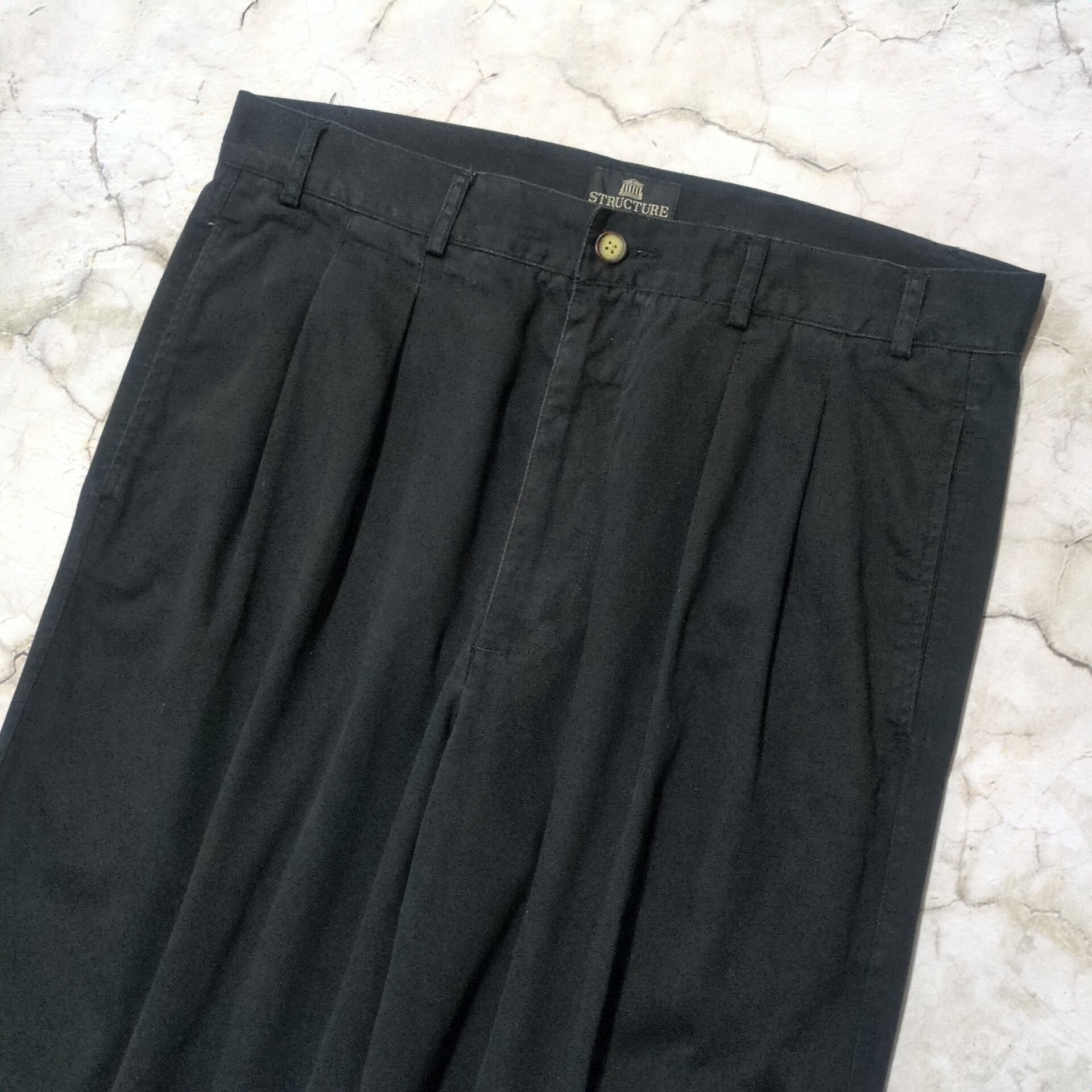 90s "STRUCTURE" 2tack Wide Cotton Slacks