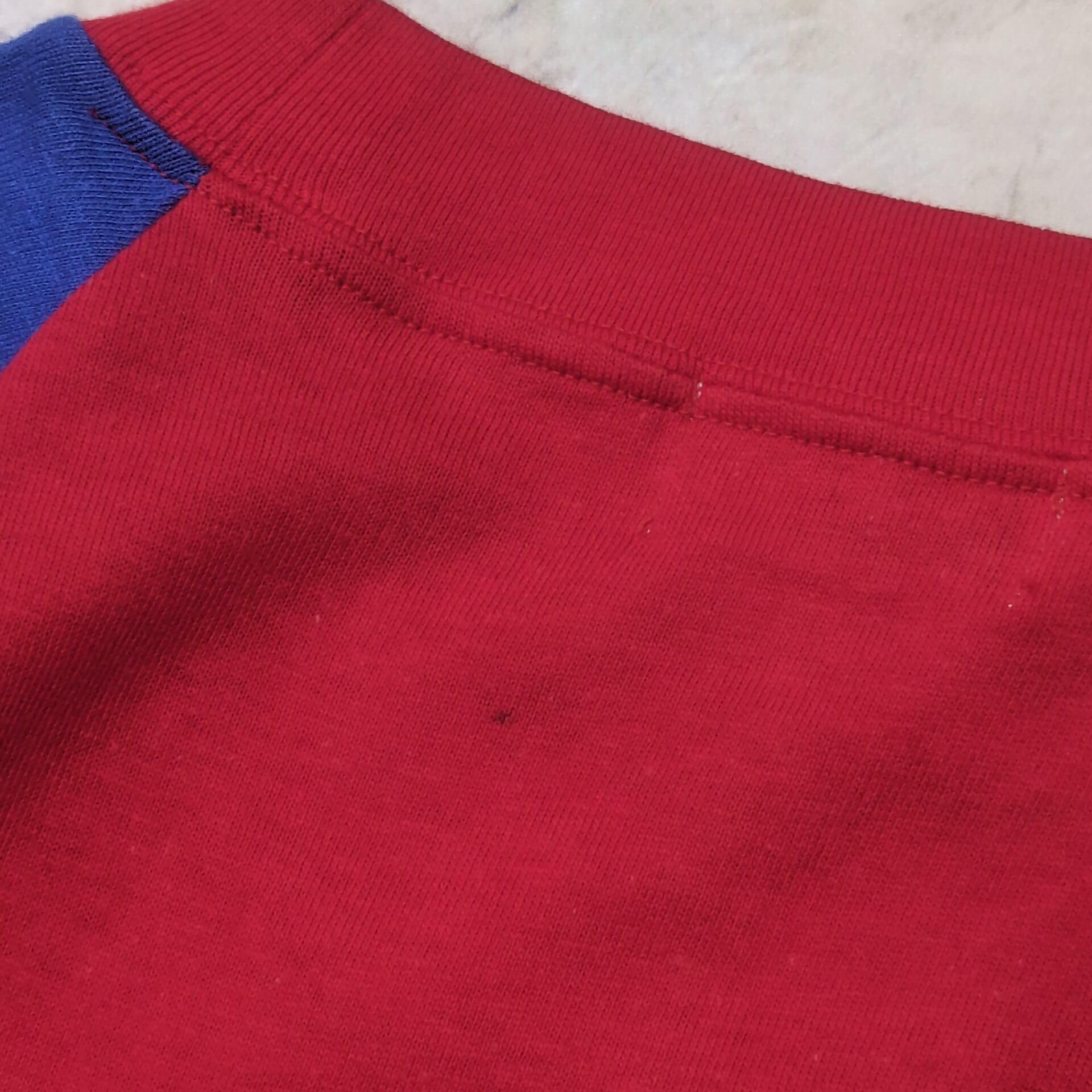 背面ネック付近に1か所小さな黒いシミのようなものがありますがほとんど目立たずコンディション良好です。