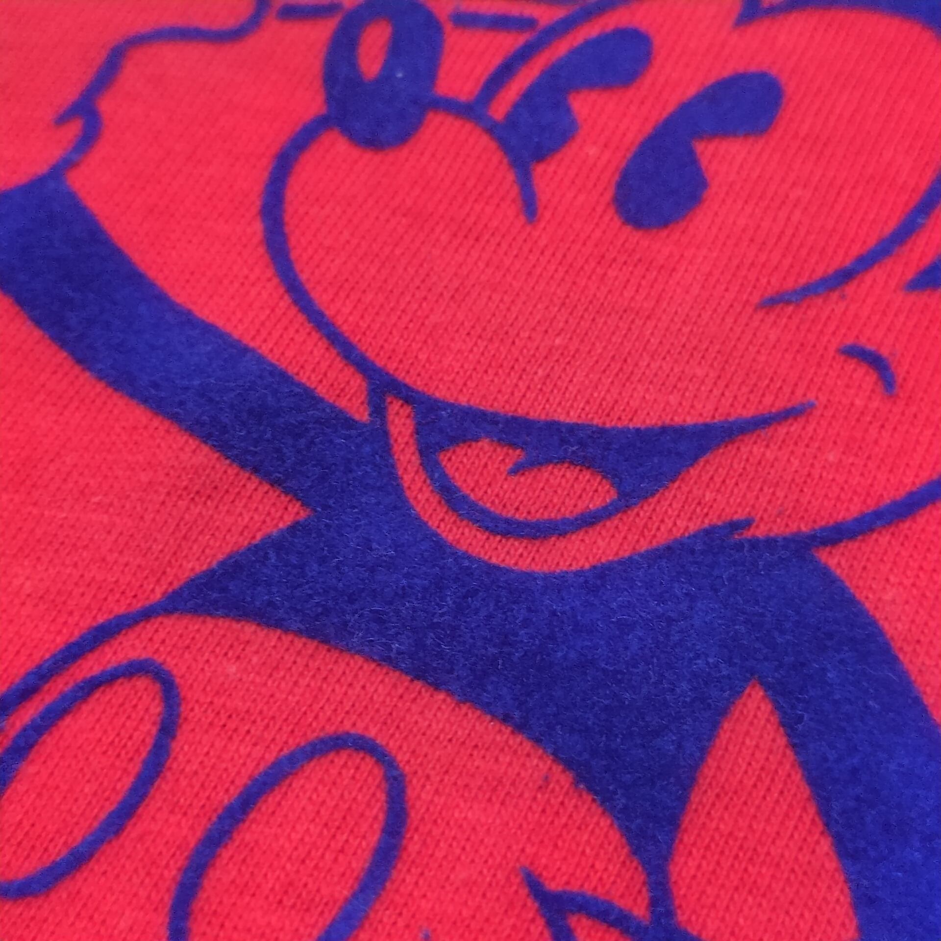 いかにもオールドらしい配色で、フロントにはミッキーのフロッキープリント。