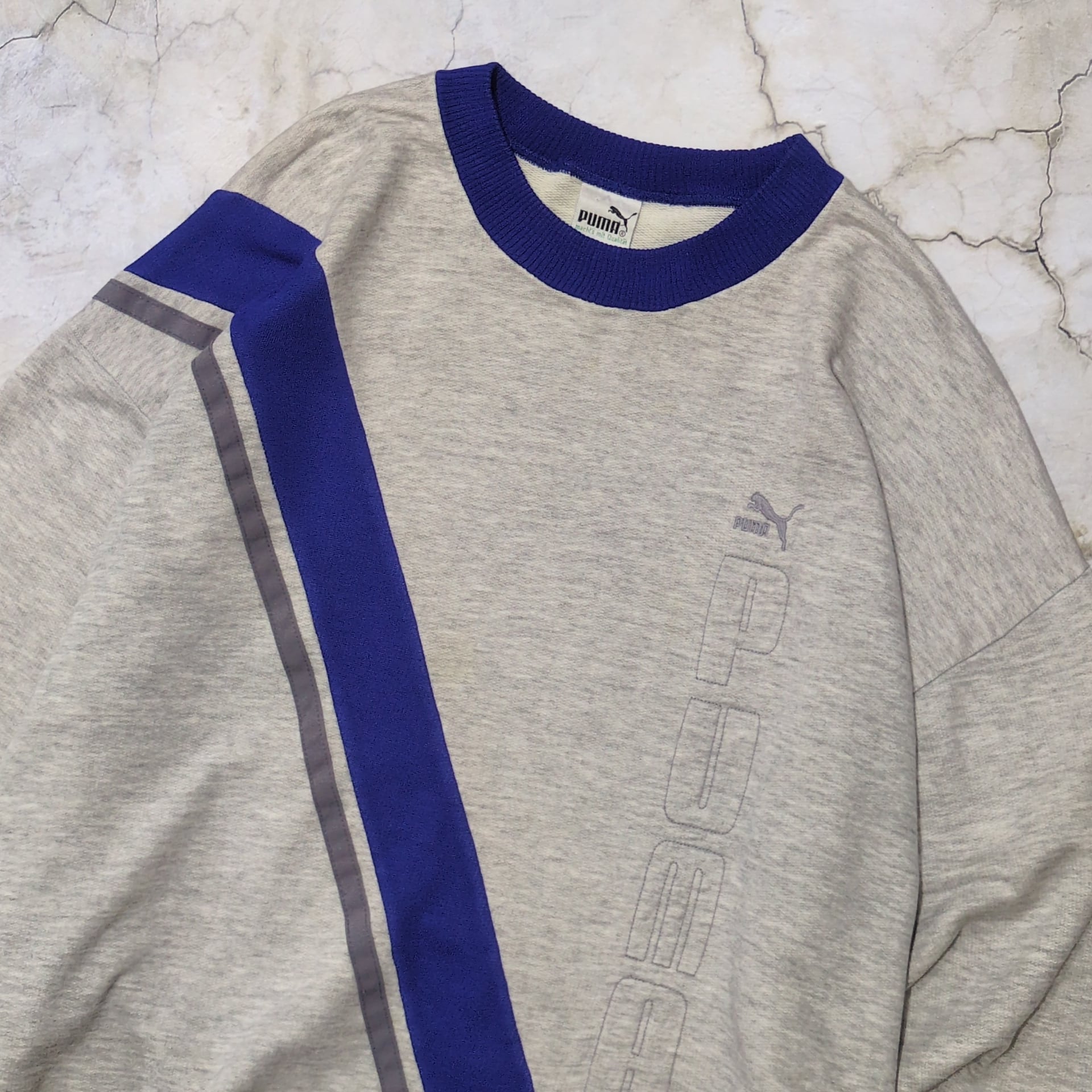 ライトグレーボディにリブ部分はブルーの切り替えとPUMAっぽくない少し珍しいデザイン。